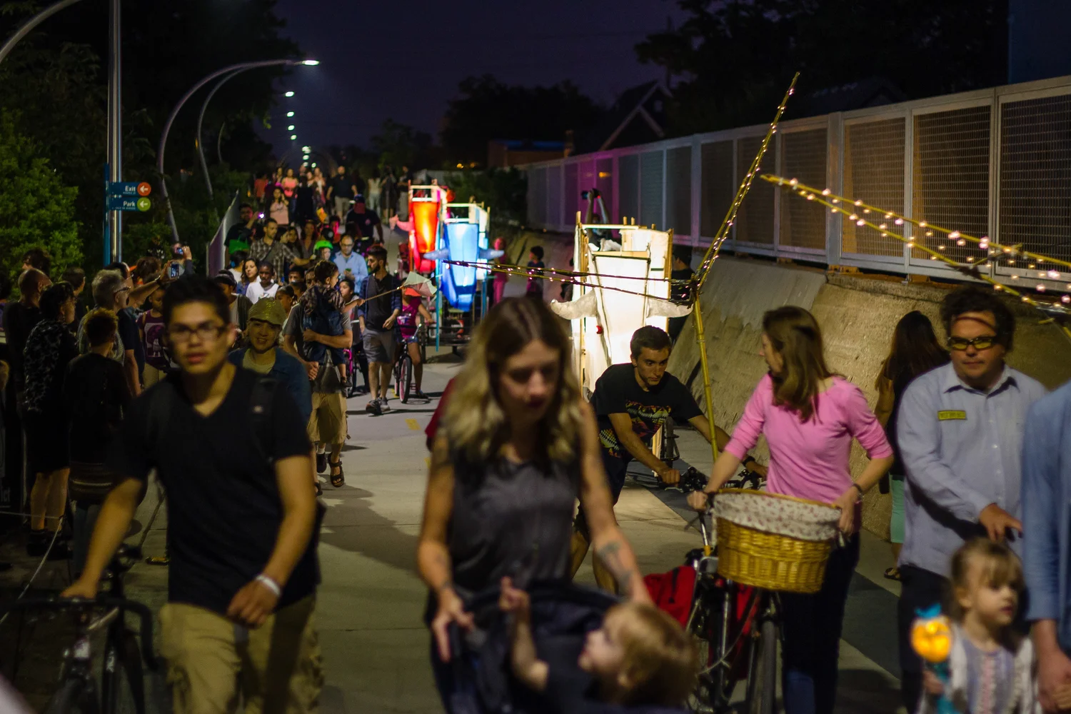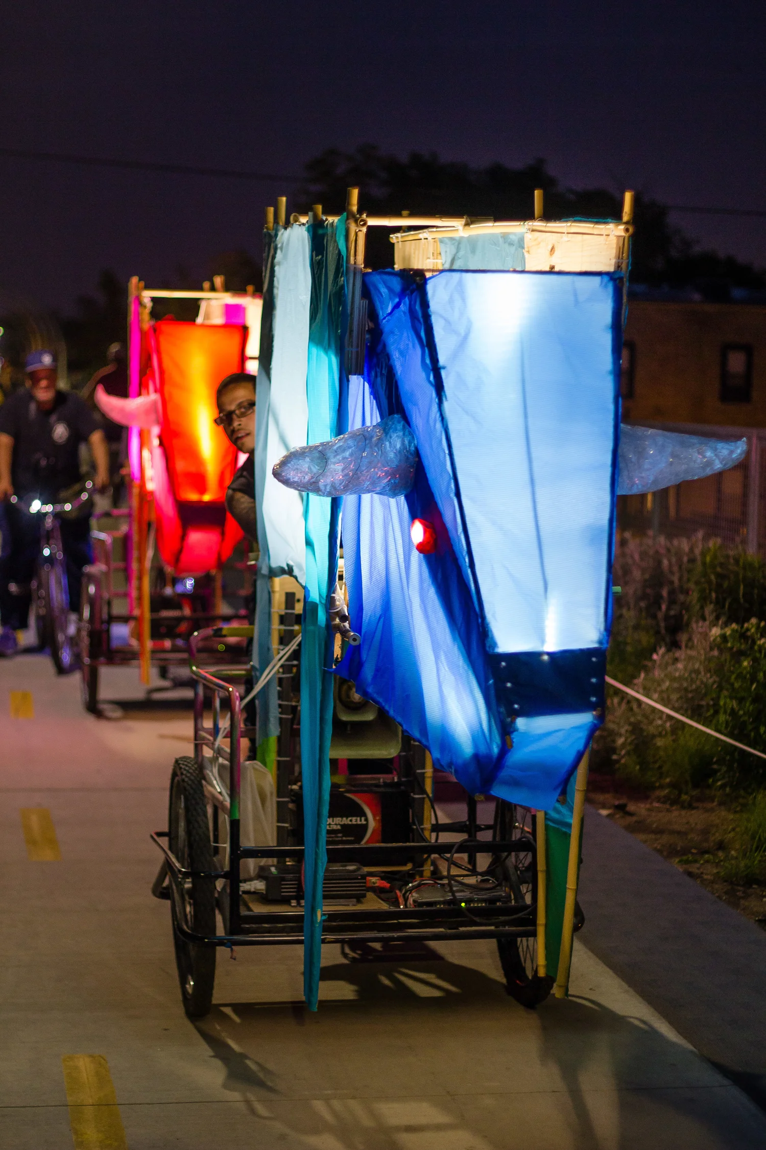 That evening, participants created illuminated paper head dresses, worn during the Illumination Hour Procession. New friends became puppeteers in our shadow puppet parade, accompanied by performers from Segundo Ruiz Belvis Cultural Center, and West Town Bikes.